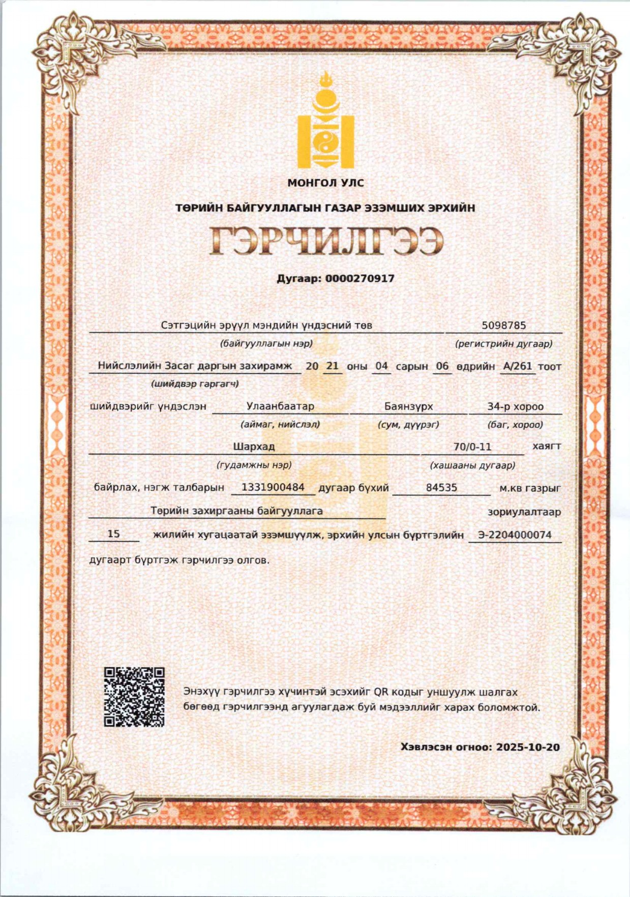 Холбоо барих утас: 70150511